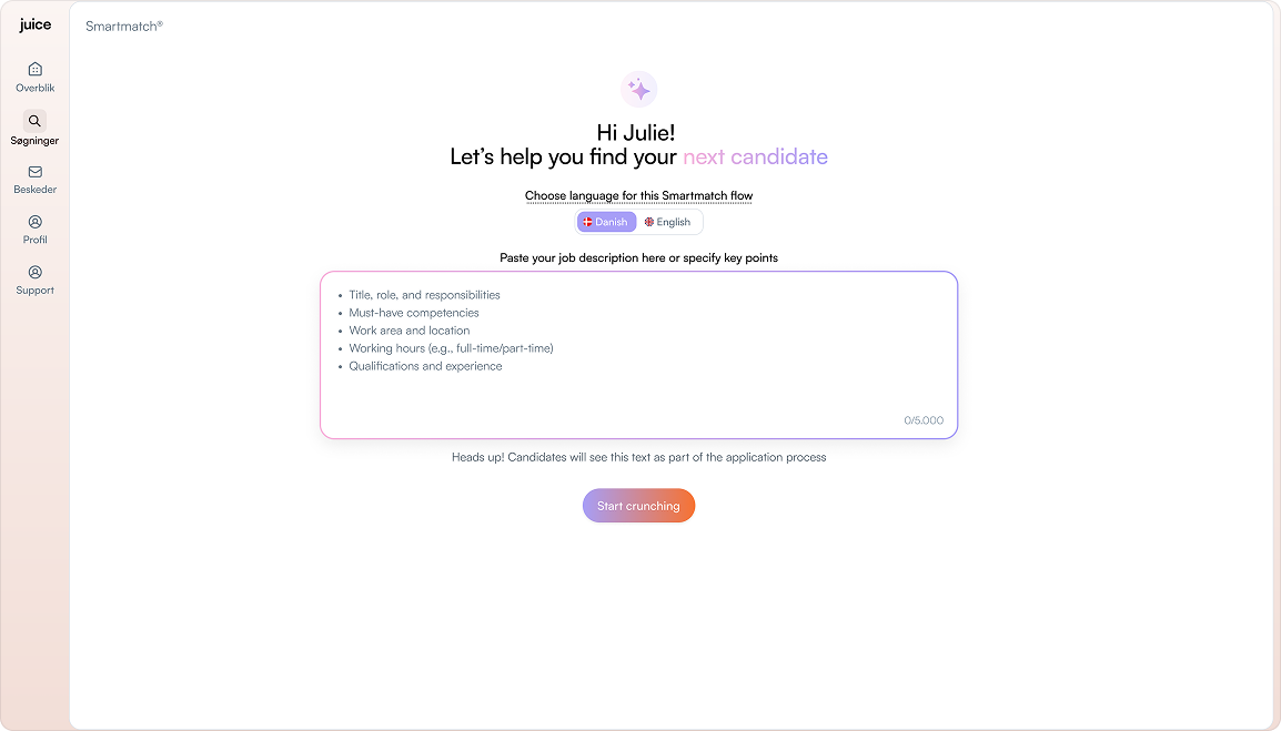 “Juice is super easy and intuitive to use. I quickly got a clear overview of the candidates, and it’s definitely a tool that saves time in screening and makes the process more manageable. For me, the platform is a straight five out of five.”